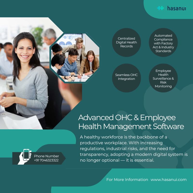 Hasanui offers you a Complete Solution for Occupational Health Management Software in Ahmedabad, Gujarat. Easily capture, track and manage employee health records to ensure a healthy workforce.